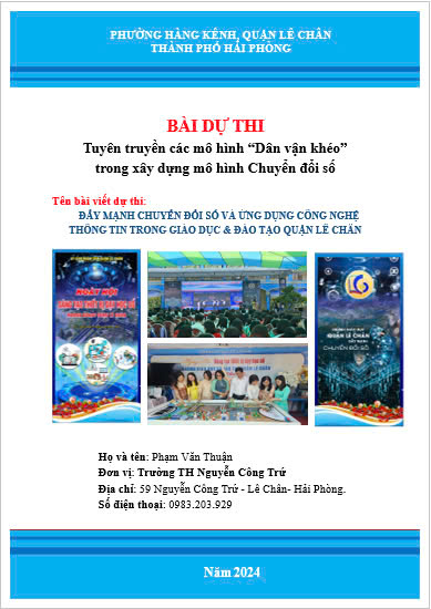Thực hiện Kế hoạch về chuyển đổi số của Phòng Giáo dục và Đào tạo quận Lê Chân, nhiều năm qua Trường tiểu học Nguyễn Công Trứ nơi tôi công tác đã đẩy mạnh công tác tuyên truyền, nâng cao nhận thức, phổ cập tư tưởng về chuyển đổi số cho cán bộ quản lý, đội ngũ giáo viên và học sinh về tầm quan trọng của chuyển đổi số và cùng nhau xây dựng văn hóa số trong giáo dục, tạo động lực thúc đẩy công tác chuyển đổi số trong trường học.