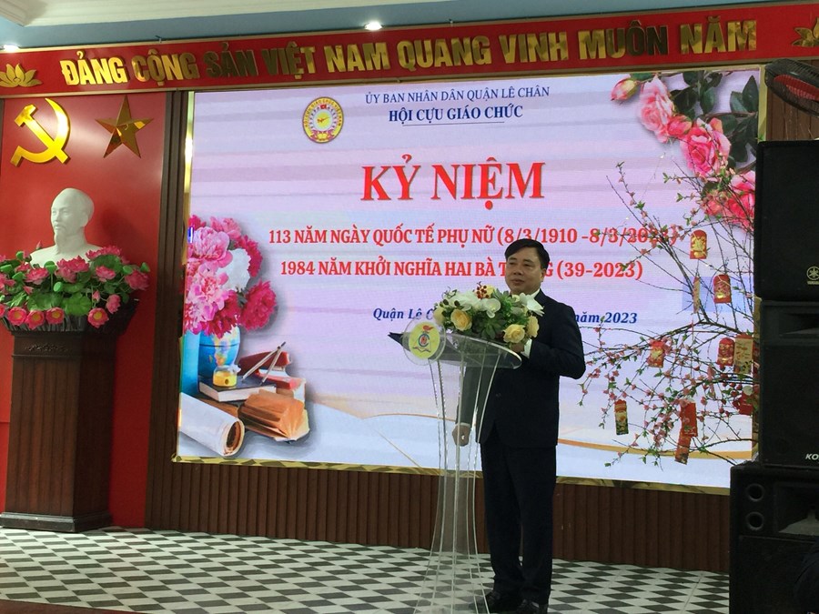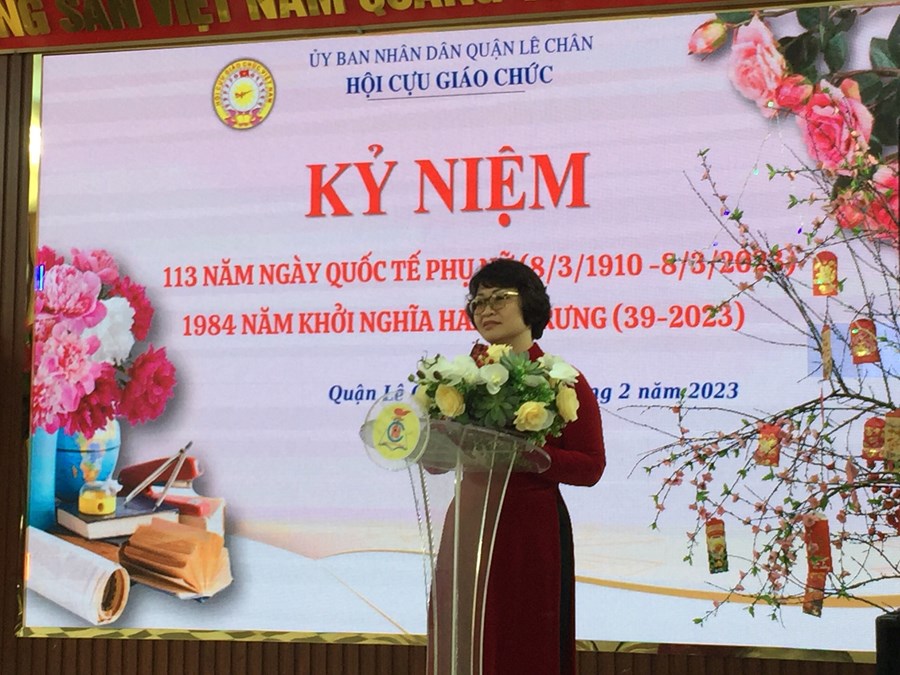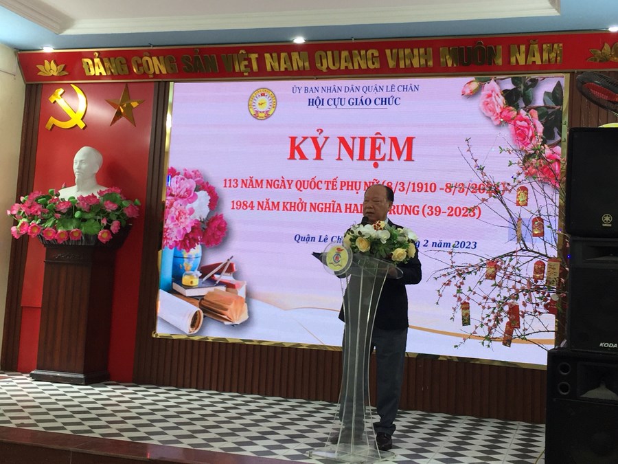 Hòa trong không khí vui mừng chào đón ngày Quốc tế Phụ nữ mùng 8/3 và kỉ niệm 1984 năm khởi nghĩa Hai Bà Trưng. Sáng ngày 28/2, hội cựu giáo chức quận Lê Chân đã tổ chức buổi gặp mặt tại trường TH Nguyễn Công Trứ nhằm ôn lại truyền thống cao đẹp của nghề dạy học, tôn vinh và tỏ lòng biết ơn sâu sắc đối với thế hệ các thầy cô giáo trong sự nghiệp trồng người Đến dự với buổi lễ có: