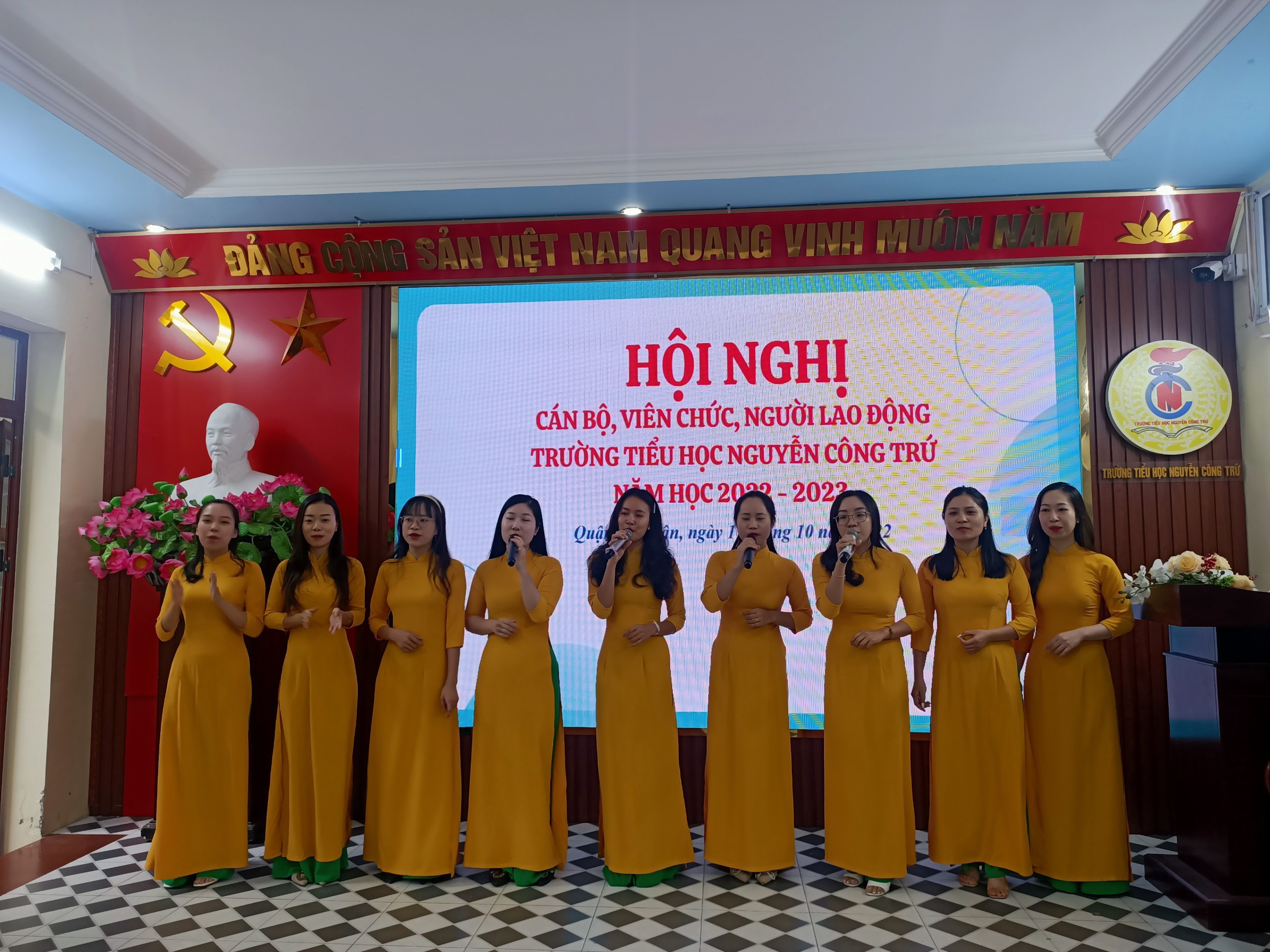 Thực hiện hướng dẫn của Liên đoàn Lao động Quận Lê Chân về việc hướng dẫn tổ chức Hội nghị cán bộ, viên chức, người lao động. Ngày 19/10/2022, trường tiểu học Nguyễn Công Trứ tổ chức Hội nghị cán bộ, viên chức, người lao động năm học 2022 – 2023.