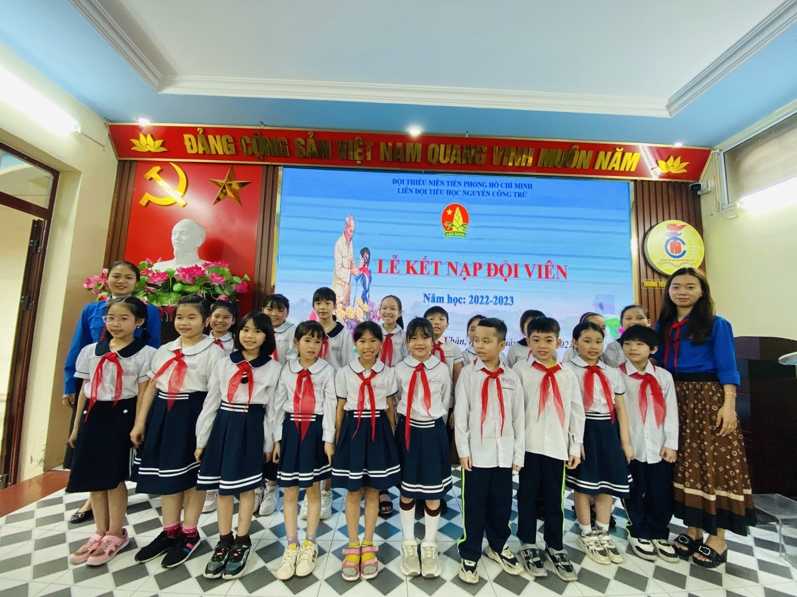 Thiết thực thi đua lập thành tích chào mừng kỉ niệm 92 năm ngày thành lập Đoàn TNCS Hồ Chí Minh( 26/3/1931-26/3/2023); thực hiện chương trình công tác Đội và phong trào thiếu nhi năm học 2022- 2023, chiều ngày 21/3 Liên đội Tiểu học Nguyễn Công Trứ vui mừng tổ chức kết nạp Đội cho các em học sinh khối 3 của nhà trường.