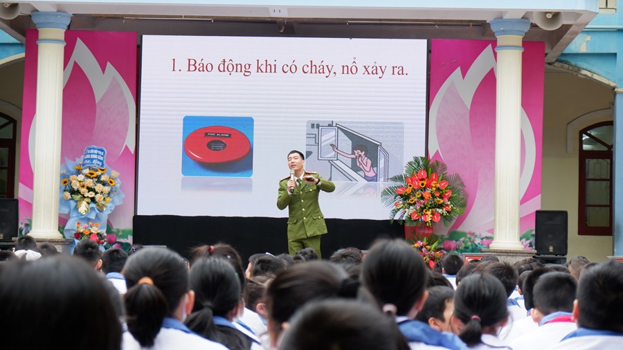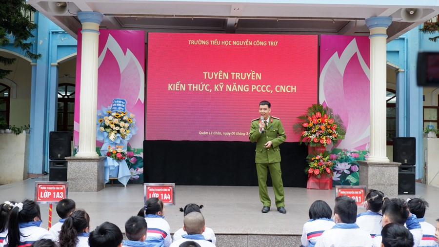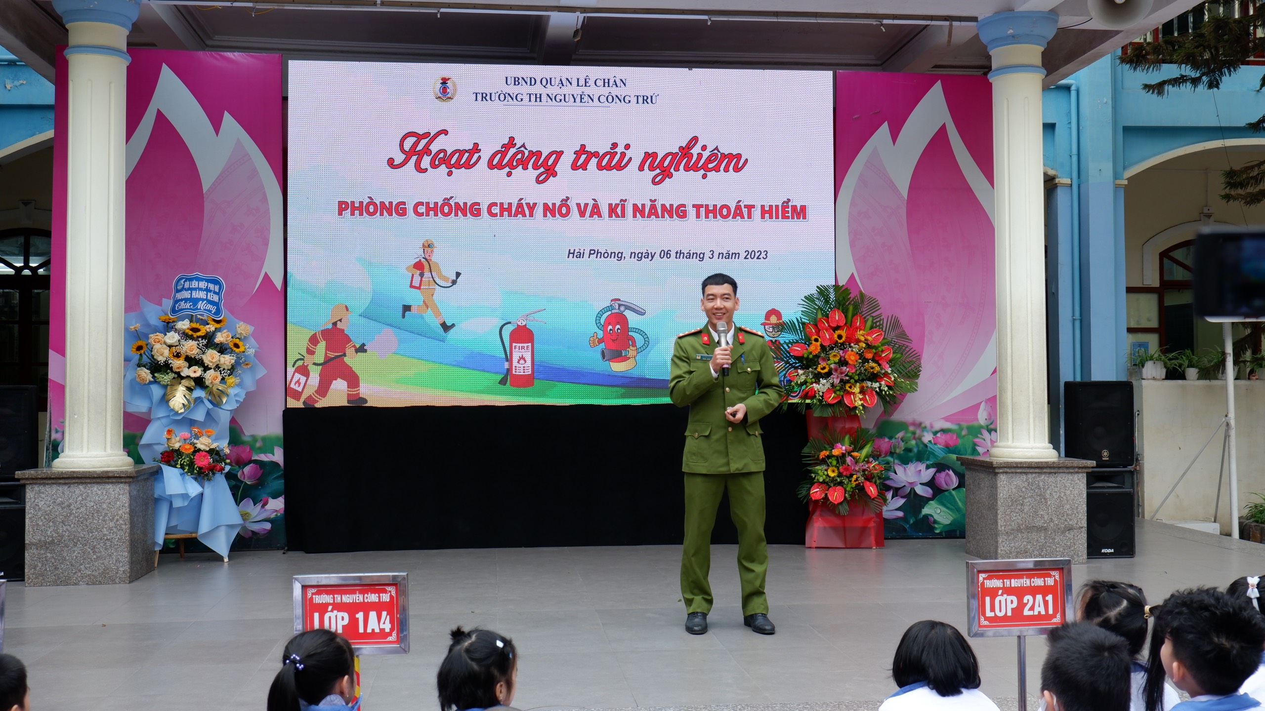 Ngày 6/3/2023, trường tiểu học Nguyễn Công Trứ phối hợp cùng công an cảnh sát phòng cháy chữa cháy quận Lê Chân tổ chức tuyên truyền một số biện pháp phòng chống cháy nổ và kĩ năng thoát hiểm cho các em học sinh toàn trường.